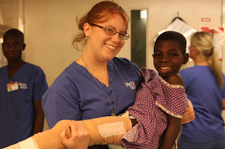 The morning Komla was leaving, I came down to the ward for one last visit with him. He barely wanted to look at me when I came down. Sullen and sad, he was avoiding all the nurses, just sitting quietly in a chair, knowing this was all about to end. After a few attempts, I convinced him to come to me, and lifted him up for a hug. As soon as he was in my arms, he was directing me where to go. So we walked down the hall, him with his legs wrapped around me like a small child, head nestled under my chin, content to be carried for a while. We stopped to look in other wards, wave at other patients, shake hands with and hug other nurses. And then we came back to the ward and goofed around a bit. One final hug and I passed him off to someone else. I didn't return for the time he left. I didn't want to fight for his attention amongst everyone else who wanted to say goodbye. I wanted my last time with him to end on a good note.